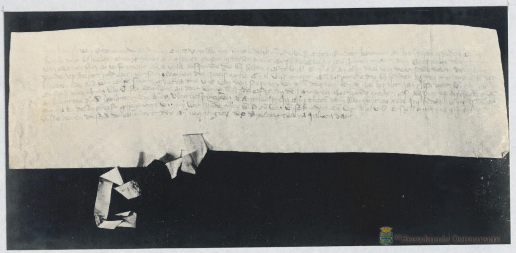 Charter uit 1393 waarin sprake is van een Bergvrede en graven (grachten), voordat Ootmarsum omwald en omgracht werd (Oud archief Ootmarsum).