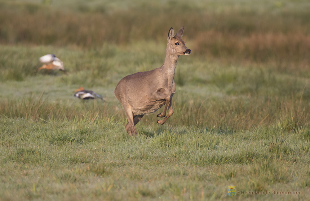 Af en toe zie je naast vogels ook andere leuke dieren. Zo liep er in de vroege ochtend van 8 april een ree door het weidevogelgebied.
