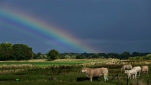 Er zaten verder nog een aantal mooie soorten tussen. Er werden namelijk 2 rode wouwen gezien. Ook een bruine kiekendief en een slechtvalk lieten zich fraai bekijken. Ook de afwisselende luchten met geweldige wolken en regenbogen waren een lust voor het oog. Af en toe moest er ook geschuild worden voor de pittige regenbuien.