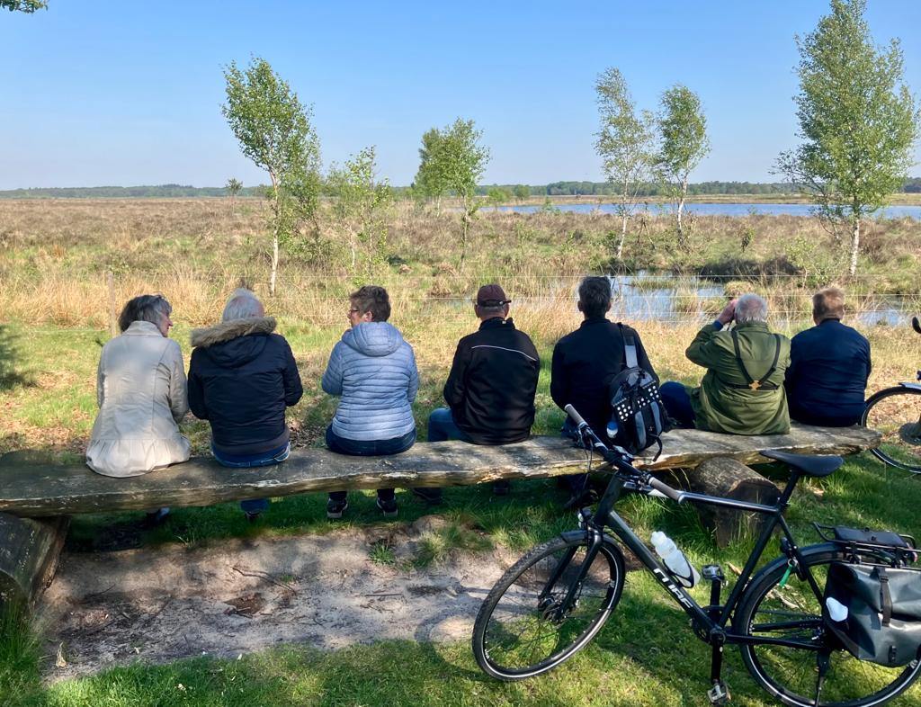 Onze tocht ging op de fiets kris kras door het zeer uitgebreide Dwingelerveld. Alle Ootmarsumse (en een Oldenzaalse 😉) vogelaars waren zeer onder de indruk van de schoonheid en de uitgestrektheid van dit schitterende gebied. Het weer was prima en de vele vogels lieten zich van hun beste kant zien. Maar liefst 76 verschillende vogelsoorten hebben we gespot en tel daarbij ook nog enkele reeën en een adder op en u kunt wel nagaan dat voor ons de dag niet meer kapot kon!