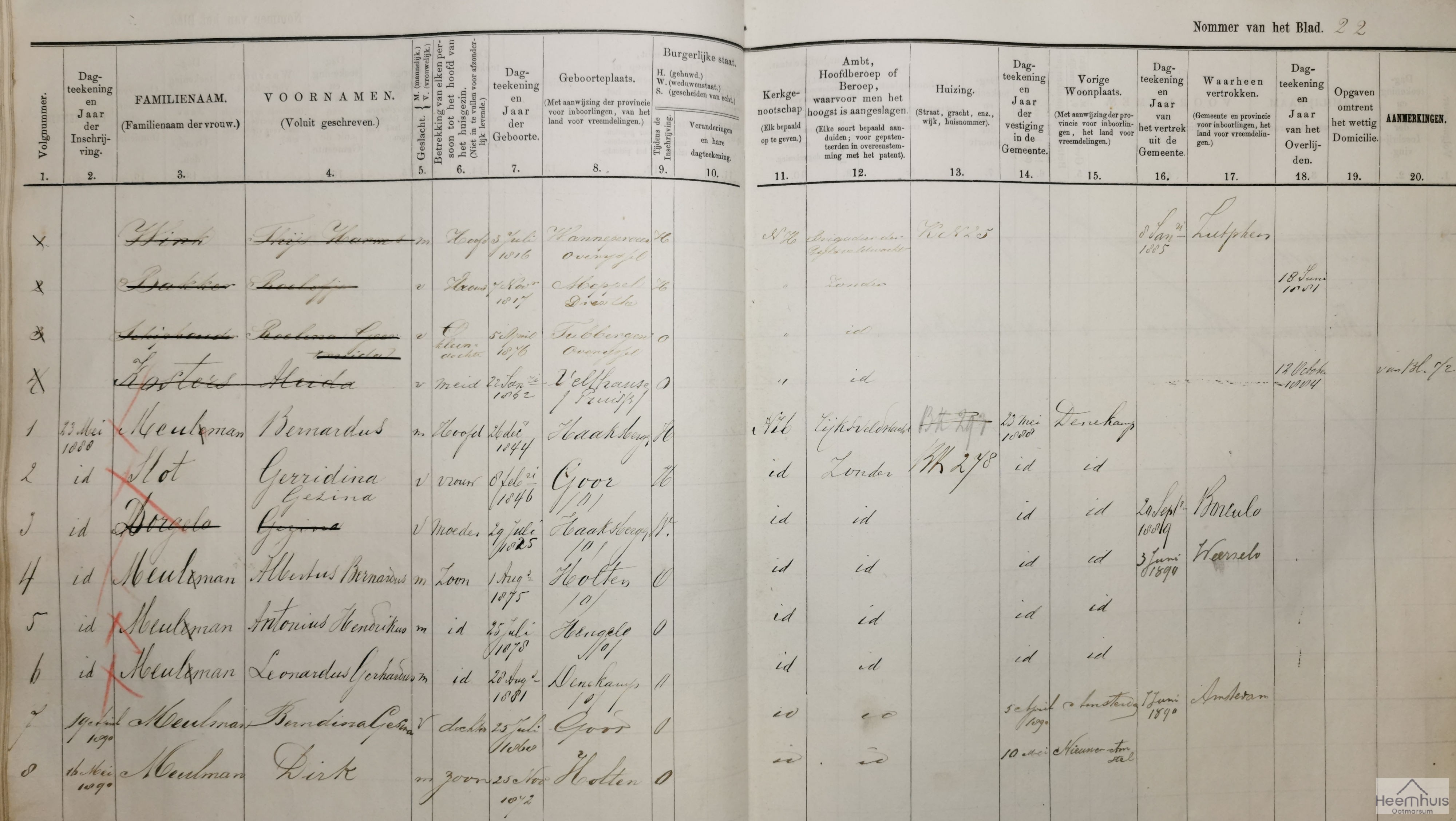 Op deze pagina vindt u alle gegevens die gevonden zijn in de boeken van het bevolkingsregister Ootmarsum voor het hedendaagse adres
