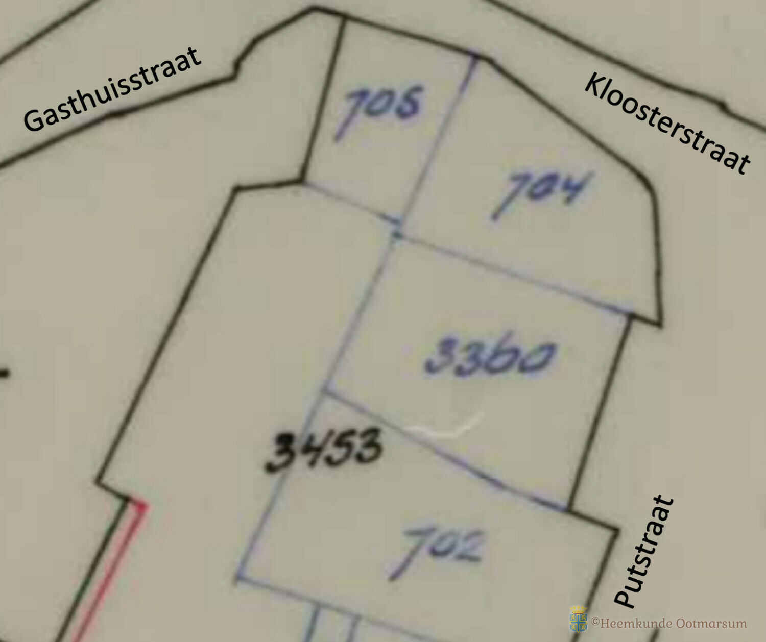 Op deze plaats lagen 200 jaar geleden drie percelen, waar nu de rechtervleugel van het zorgcentrum Den Oostenborgh. Links en rechts lagen de percelen A704 en A705. Aan de Putstraat zelf lag het perceel A703.
