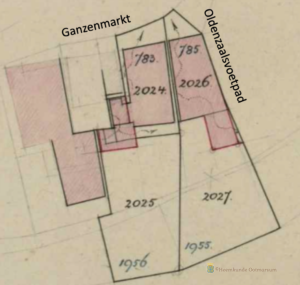 Links van dit perceel lag in die tijd de woning van burgemeester Jan Willem Essink (1765-1838) (De Stad 208), later bewoond door Cato Essink (1849-1928) oftewel Essinks Catootje. Dit pand is in 1957 afgebroken t.b.v. de doorsteek naar de Oostwal, het Oldenzaalsvoetpad.