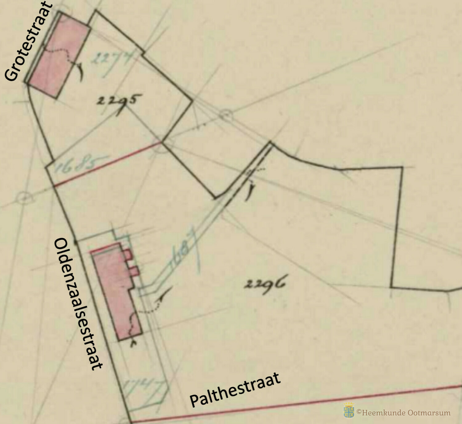 In 1914 wordt een aantal percelen samengevoegd en ontstaat het nieuwe kadastrale nummer A2296. In 1922 wordt er een bijbouw gemaakt en in 1931 wordt er grond afgestaan aan de gemeente ter verbreding van de Oldenzaalsestraat en krijgt het het kadastrale nummer A2472.