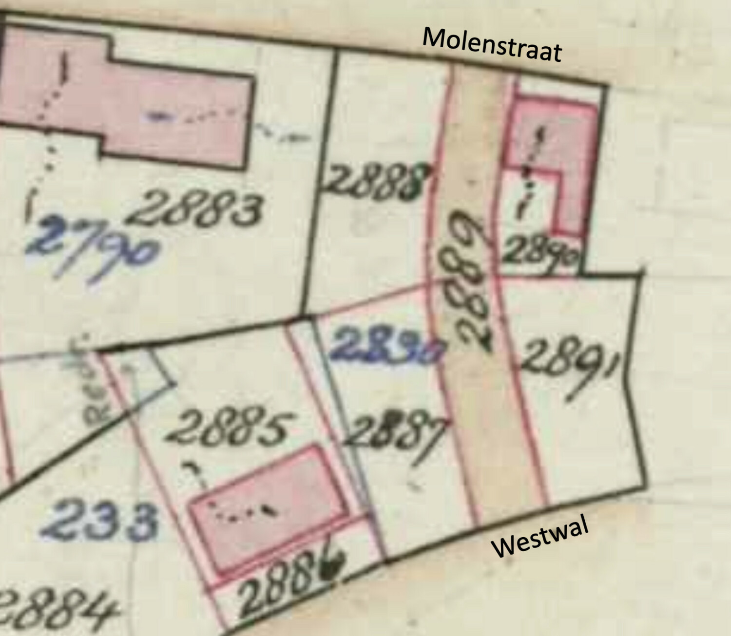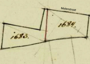 In 1952 wordt de tuin verkocht aan de gemeente samen met enkele andere omliggende percelen en samengevoegd tot het tijdelijke perceel A2830. Van daaruit worden vier bouwkavels uitgegeven en de verbindingsweg tussen de Molenstraat en Westwal, de Molendwarsstraat. De volgende huisnummers worden gerealiseerd: