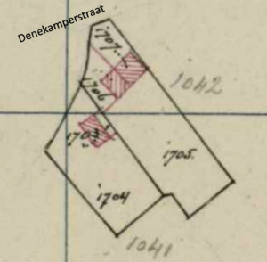 In 1832 lagen langs de Denekamperstraat twee percelen die zijdelings achter elkaar lagen. De voorste, met het kadastrale nummer A1042 was een gaarde en daar staat nu de woning met het huisnummer 24. Daarachter lag een perceel met het kadastrale nummer A1041 en was toegankelijk via een inverdan pad. De woning die daar nu staat heeft het huisnummer 22.