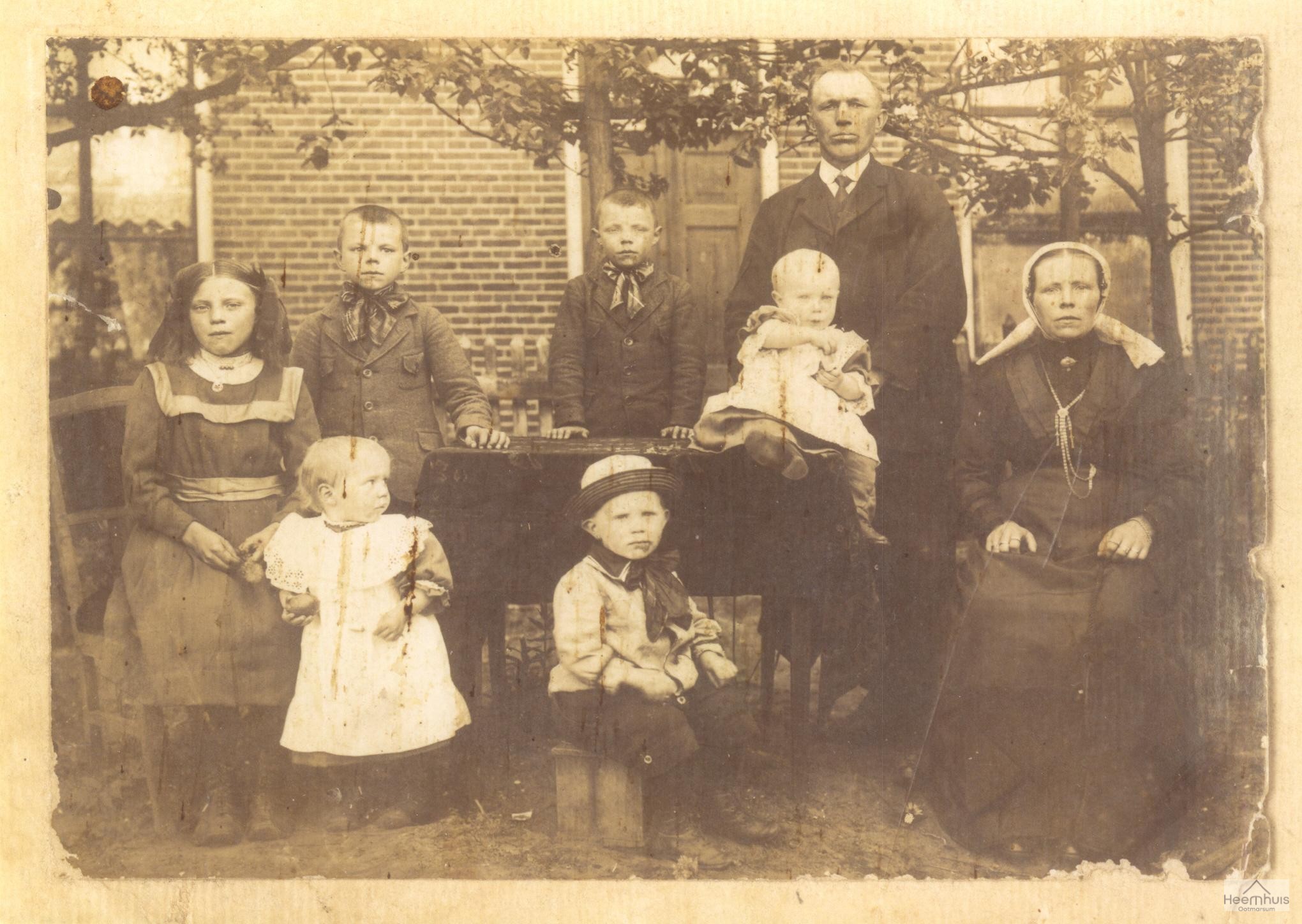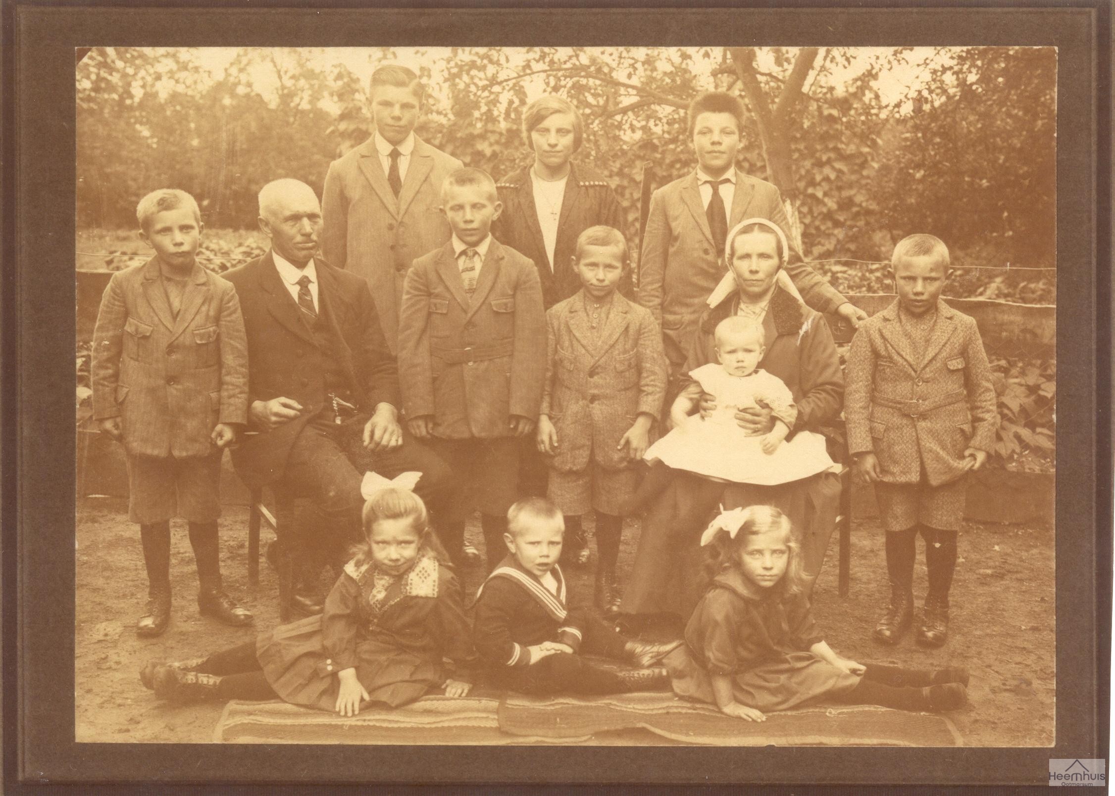 Midden van links naar rechts: Eef Lohuis (1918-1977), Gerard Lohuis (1873-1951), Bernard Lohuis (1915-1959), Gerard Lohuis (1916-1983), Hanna Broekhuis (1887-1967) , Suze Lohuis (1926-1980) en Herman Lohuis (1919-1971)