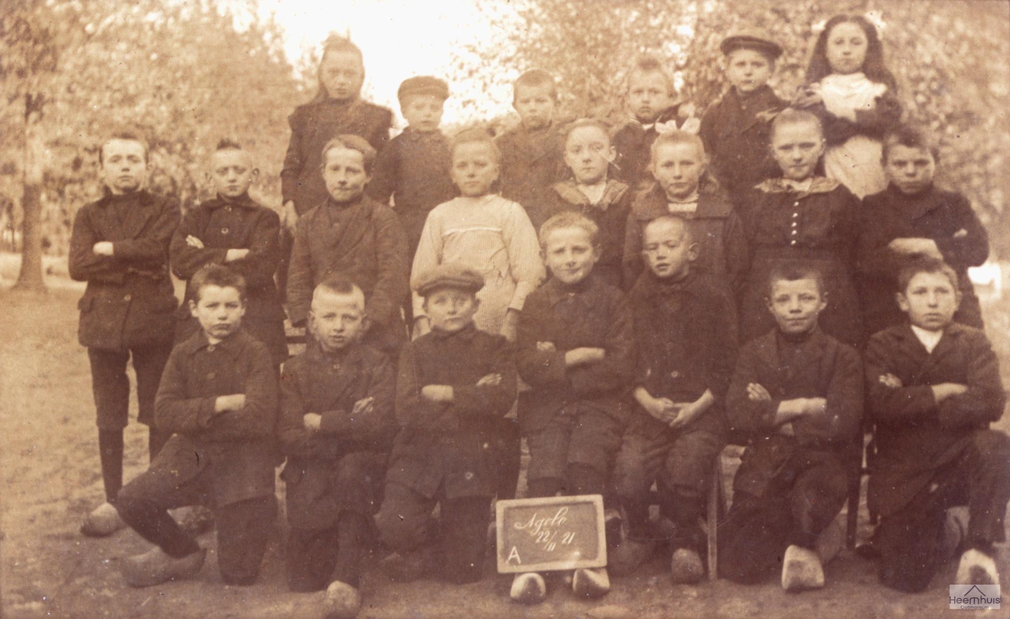 Achter van links naar rechts: Jan Lohuis (1910-2001), Marie Lohuis (1908-1984) en Hendrik Lohuis (1911-1986)