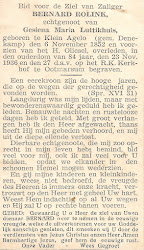 Bernard Rolink overleed op 23 november 1936 op 84-jarige leeftijd te Denekamp