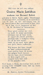 Gezina Maria Luttikhuis is overleden op 4 januari 1951 op 91-jarige leeftijd te Denekamp