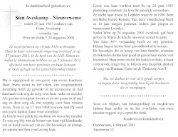 Zijn weduwe Gesina Johanna Nieuweweme overleed op 27 januari 2011 op 86-jarige leeftijd te Ootmarsum