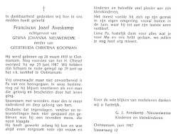 Franciscus Jozef Aveskamp is overleden op 25 juni 1987 op 68-jarige leeftijd te Ootmarsum