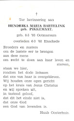 Haar weduwnaar Gerrit Jan Hermannus Bartelink overleed op 20 april 1980 op 84-jarige leeftijd te Enschede