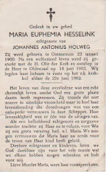 Maria Euphemia Hesselink overleed op 18 juni 1962 op 62-jarige leeftijd te Oldenzaal