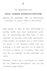 Bernardus Johannes Doornkate is overleden op 23 december 1947 op 58-jarige leeftijd te Arnhem.