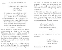 Elly Kamphuis overleed op 11 oktober 2008 op 46-jarige leeftijd te Ootmarsum