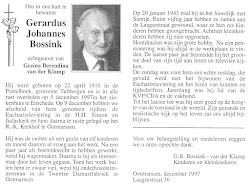 Gerardus Johannes Bossink is overleden op 5 december 1997 op 87-jarige leeftijd te Enschede