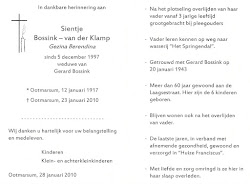 Zijn weduwe Gezina Berendina van der Klamp overleed op 23 januari 2010 op 93-jarige leeftijd te Ootmarsum
