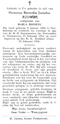 Hermannus Bernardus Josephus Rouwers overleed op 21 februari 1956 op 70-jarige leeftijd te Denekamp