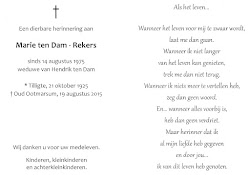 | ♀ | Geertruida Maria Theresia (Gerry) ten Dam, geboren op 22 september 1951, overleden op 1 december 2021 (70 jaar). |