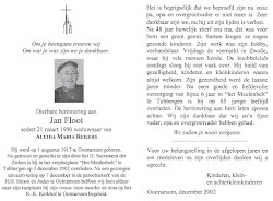 Johan Herman Willem Floot is overleden op 3 december 2002 op 85-jarige leeftijd te Tubbergen