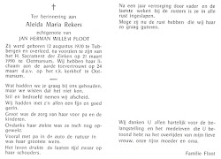 Aleida Maria Rekers overleed op 21 maart 1990 op 69-jarige leeftijd te Ootmarsum