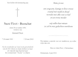 Susanna Johanna Busscher is overleden op 30 mei 2010 op 69-jarige leeftijd