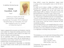 Susanna Aleida Josephina Luft overleed op 14 november 2012 op 82-jarige leeftijd te Oldenzaal