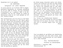 Johanna Maria Eertman is overleden op 28 juli 1986 op 68-jarige leeftijd te Tilligte