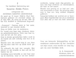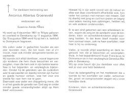 Haar weduwnaar Antonius Albertus Groeneveld overleed op 11 augustus 1994 op 92-jarige leeftijd te Denekamp