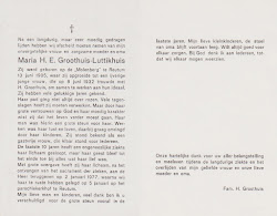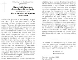 Haar weduwnaar Henri Alphonsus Josephus Groothuis overleed op 15 oktober 1990 op 88-jarige leeftijd te Almelo