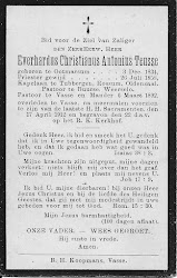 Everhardus Christianus Antonius Teusse is overleden op 17 april 1912 op 77-jarige leeftijd te Vasse (ongehuwd)
