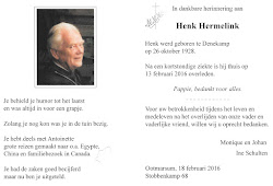 Hendrikus Johannes Hermelink is overleden op 13 februari 2016 op 87-jarige leeftijd te Ootmarsum