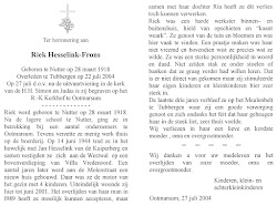 Johannes Hendrikus (Jan) Hesselink is geboren op 22 september 1914 te Ootmarsum als zoon van Johannes Hesselink (35 jaar)