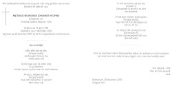Antonius Wilhelmus Johannes Heupink overleed op 21 december 2009 op 70-jarige leeftijd