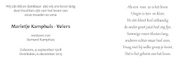 | ♀ | Ellen Kamphuis, geboren op 13 augustus 1970, overleden op 4 mei 1971 (8 maanden) . |