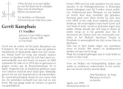 Gerrit Kamphuis is overleden op 10 mei 1998 op 52-jarige leeftijd te Enschede