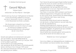 Gerard Nijhuis is overleden op 11 april 2018 op 89-jarige leeftijd te Almelo