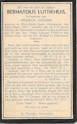 Bernard Luttikhuis overleed op 18 februari 1939 op 77-jarige leeftijd te Denekamp