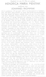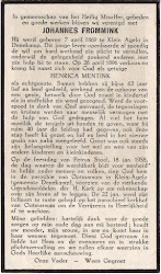 Johannes Frommink overleed op 18 januari 1958 op 88-jarige leeftijd te Denekamp