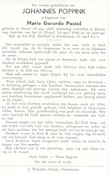 Zijn weduwe Maria Grada Postel overleed op 15 maart 1985 op 82-jarige leeftijd