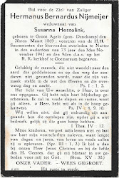 Haar weduwnaar Hermannus Bernardus Nijmeijer hertrouwde op 11 september 1902 met Susanna Hesselink