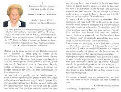 Zijn weduwe Euphemia Geziena Theresia Bekhuis overleed op 11 september 2005 op 76-jarige leeftijd te Ootmarsum