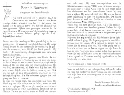 Bernardus Hermannus Rouwers is overleden op 31 januari 1998 op 74-jarige leeftijd te Ootmarsum