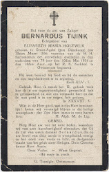 Bernard Tijink overleed op 10 mei 1934 op 78-jarige leeftijd te Denekamp