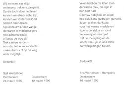 Jozephus Folkert Jacobus Wortelboer is overleden op 12 maart 1996 op 70-jarige leeftijd te Doetinchem