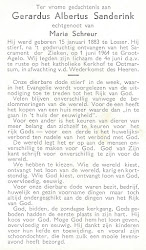| ♂ | Gerardus Marinus (Gerard) Sanderink, geboren op 29 november 1924, overleden op 25 september 2010 (85 jaar). |