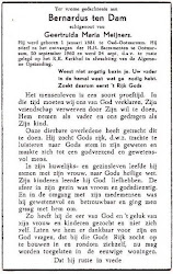 | ♀ | Geertruida Maria (Geertruida) ten Dam, geboren op 27 juni 1912, overleden op 12 februari 1913 (7 maanden). |