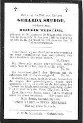 Zijn weduwe Gerharda Smudde overleed op 15 januari 1918 op 65-jarige leeftijd te Deventer