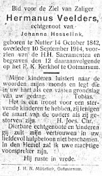 Haar weduwnaar Hermannus Veelers overleed op 10 september 1914 op 71-jarige leeftijd te Denekamp